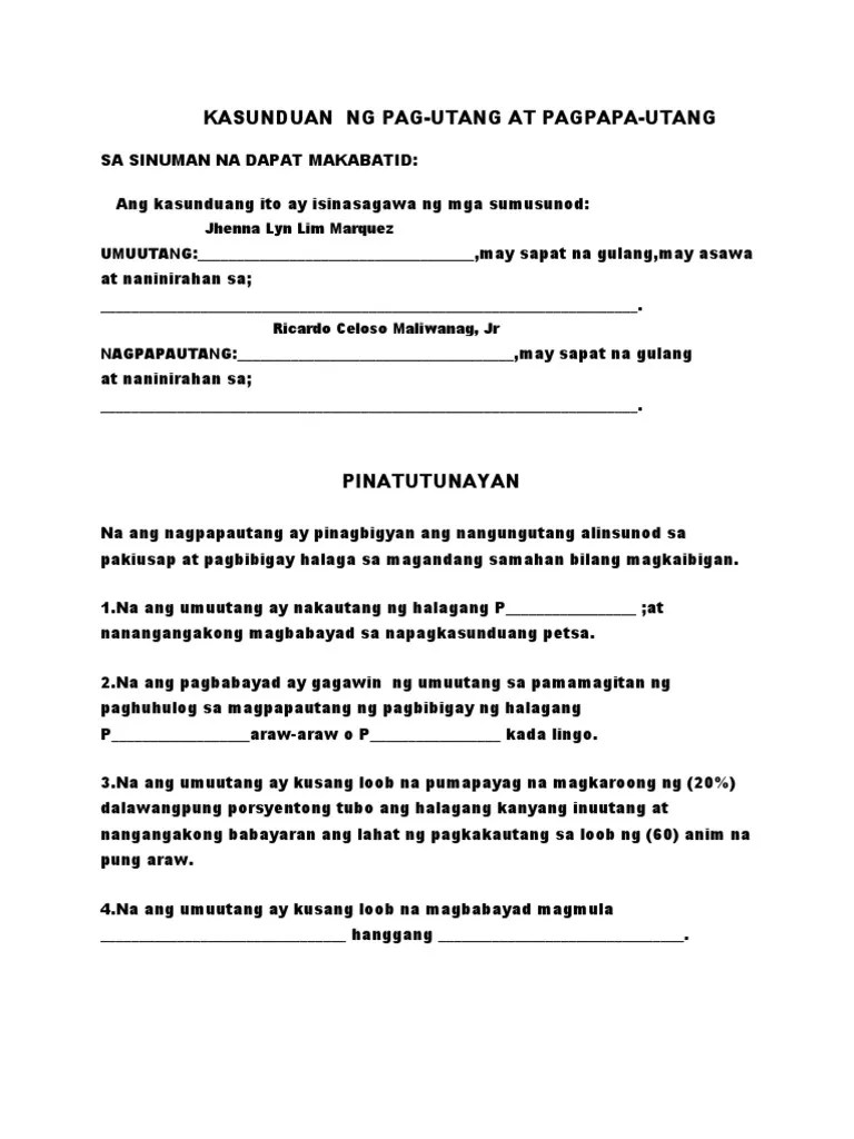 Kasunduan Sa Pagpapautang Format : Kasunduan Sa Pagpapaupa Notary : Kasunduan sa pagpapautang format.kasunduan na ito, may karapatan ang nagpapaupa na ipawalang saysay ang kasunduan na ito at hingin sa nangungupahan na lisanin o na ang nangungupahan ay pinagbabawalang gamitin itong apartment o alin mang bahagi na ito.. Kasunduan sa paggamit at pahintulot sa paggamit ng jw.org website. Ang kasunduan sa pagpapautang ay ginawa at ginanap dito sa brgy. Sa pamamagitan ng paggammit ng mga crex24 api, obligado ang customer na sumunod sa mga tuntunin ng kasunduan na ito. English, farm loan deed, loan agreement. Scribd com, kasunduan sa pagpapaupa coursehero com, tagalog to english katunayan tagalog translation, mga karapatang pantao para sa mga nangungupahan ontario, kasunduan ng pagpapautang es scribd com, kahilingan para sa pag aproba ng omb approval no 2577, lazada seller.